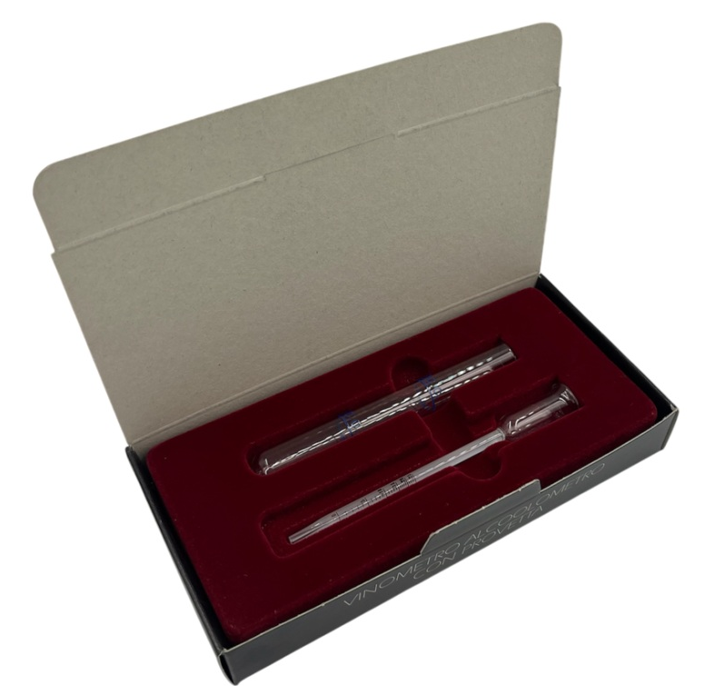 Mål præcist alkoholprocenten i vine og spiritus med VINOMETER-ALKOHOLOMETER ved hjælp af kapillaritetsmetoden.