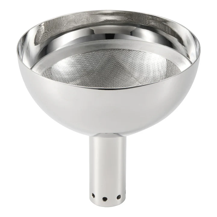 Gør vinoplevelsen komplet med denne vinkaraffeltragt i rustfrit stål – designet til både at ilte og filtrere din vin, mens du hælder. Den indbyggede finmasket si fanger vinsten og eventuelle urenheder, mens vinen fordeles jævnt i karaflen via de små huller i bunden. Enkelt, funktionelt og elegant – præcis som det skal være 🍇